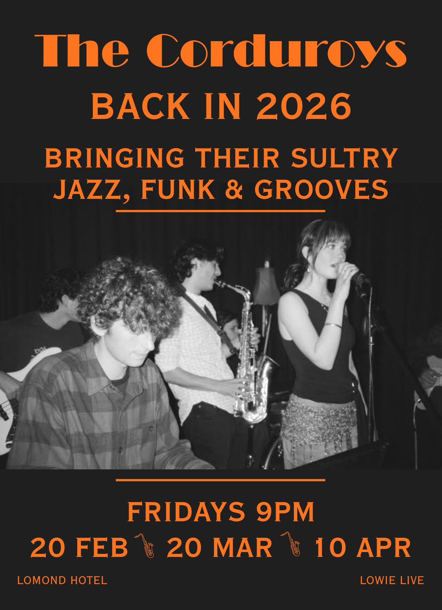 Lowie Live Presents The Corduroys. Pop, funk & modern jazz...